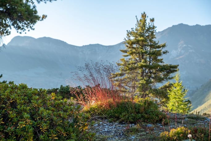 Ce matin-là, je m'étais levé très tôt pour être vers 2000m au lever du soleil, ce qui m'a permis de capturer le feu qui semble embraser une partie de ces herbes solitaires.